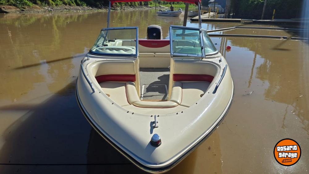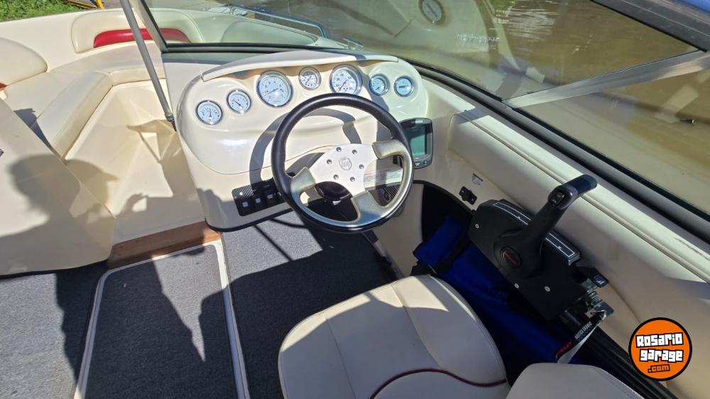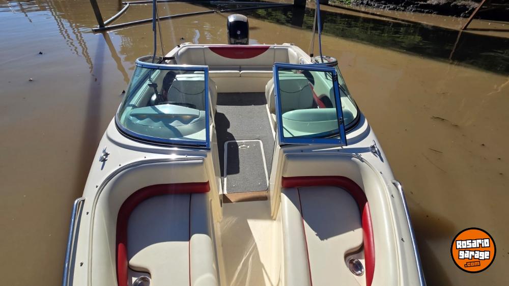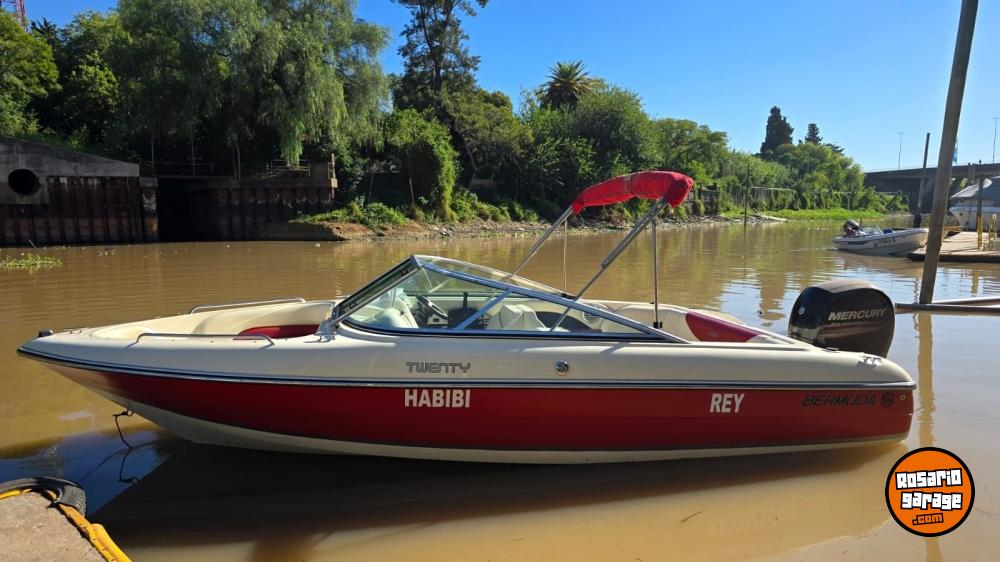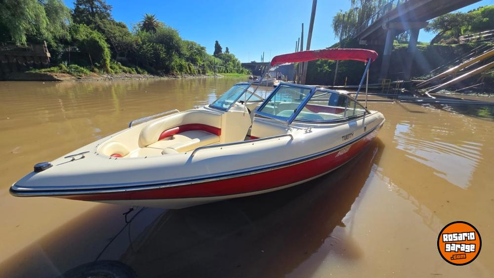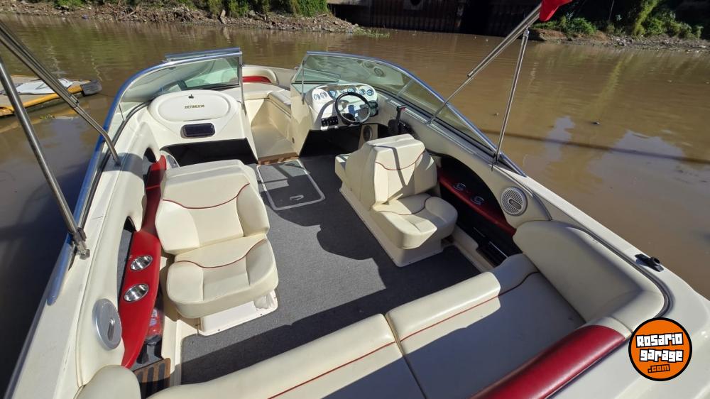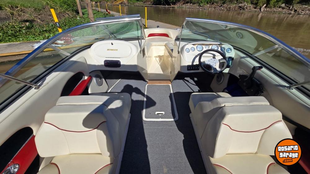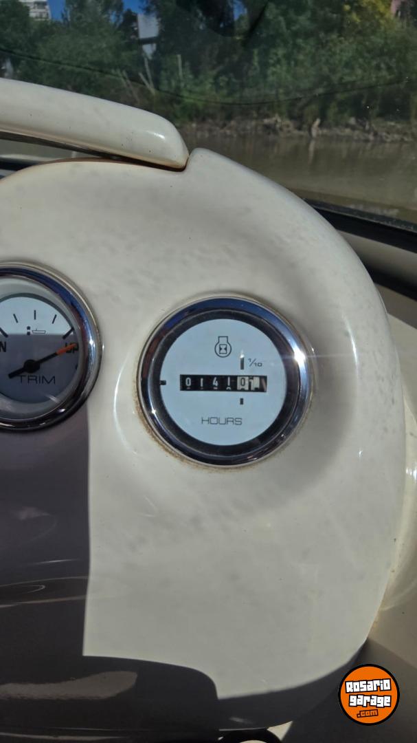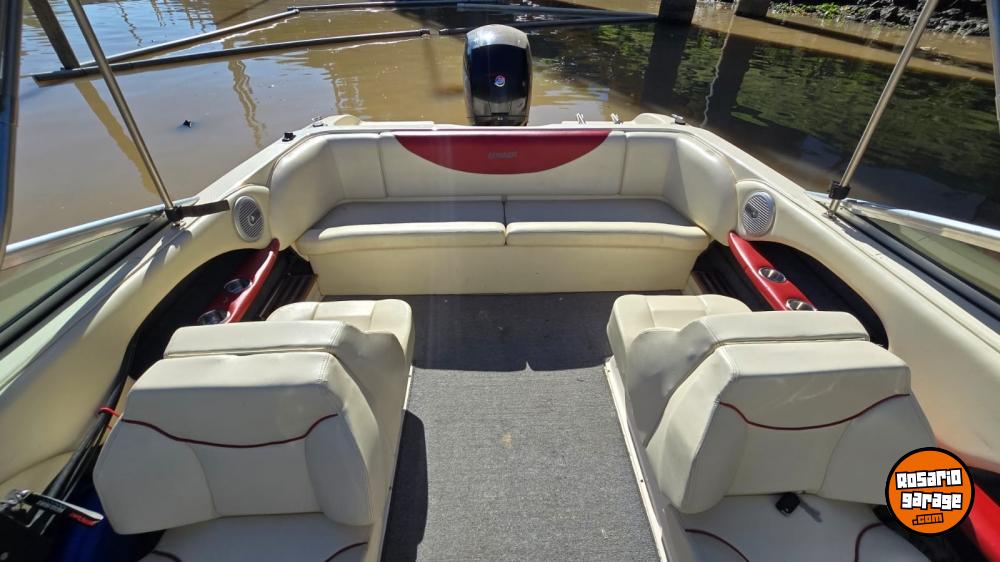 Lona. toneau de proa, bomba de achique, ecosonda, corta corrientes, audio, toldilla, escalera, alfombras desmontables.