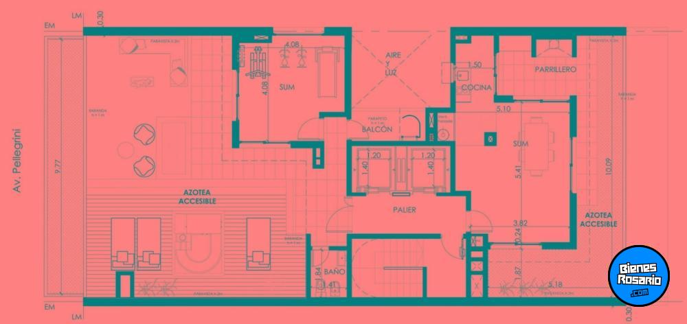 Amenities en el edificio: SUM amplio con parrillero, solarium con deck de madera, hidromasaje, césped sintético y ducha.