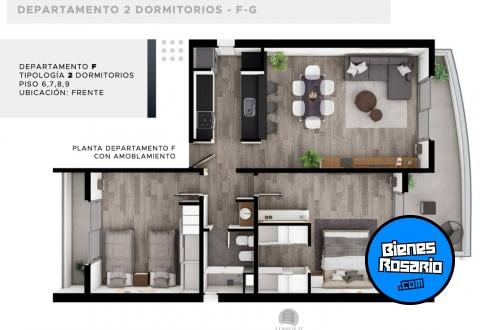 Hay disponibles unidades de dos dormitorios con orientación al frente que también cuentan con un balcón de gran dimensión.