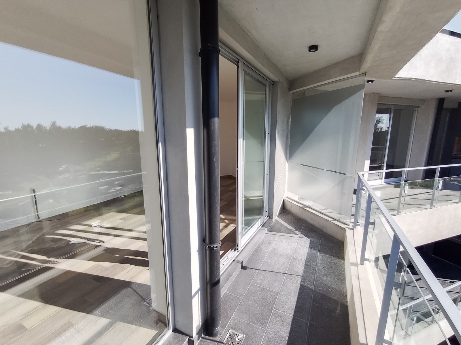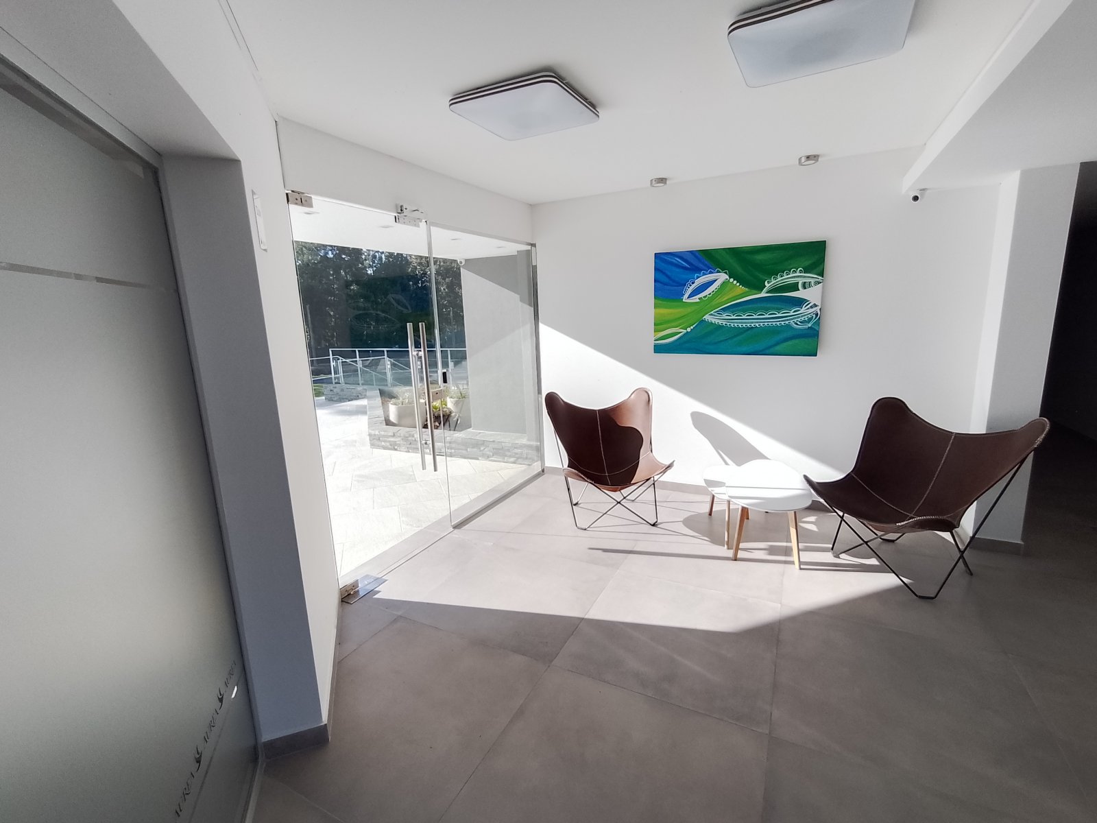 Detalles de categoría: puerta blindada de seguridad PENTAGONO enchapada en madera, pisos de porcelanato símil madera, aberturas anodizadas con DVH Blindex 3+3 y revestimientos en porcelanatos de primera calidad. Edificio del 2023 con 5 pisos.