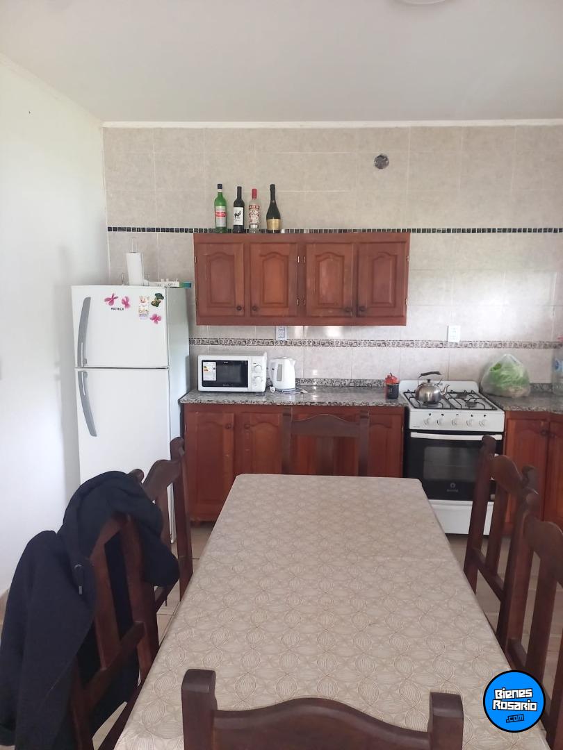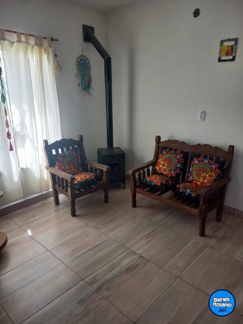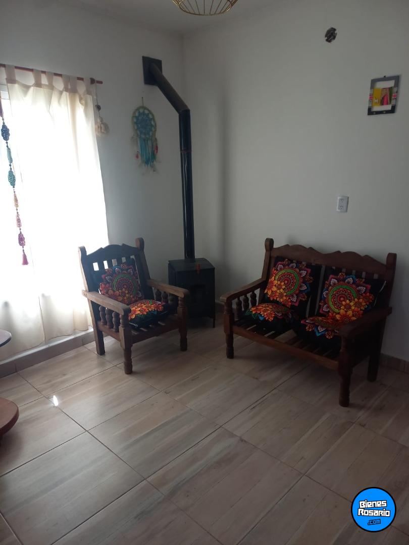 En el interior, ofrece un luminoso living comedor con estufa a leña, cocina totalmente equipada con muebles de madera, mesada de granito, cocina, termotanque, microondas, heladera y freezer.