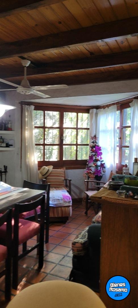 PB: cocina - comedor integrados, baño completo, lindero está el quincho cubierto con ventanales al jardín, baño y cuarto de guarda. El comedor tiene un hogar a leña. Los pisos son de cerámicos rojos, el baño principal fue reciclado.