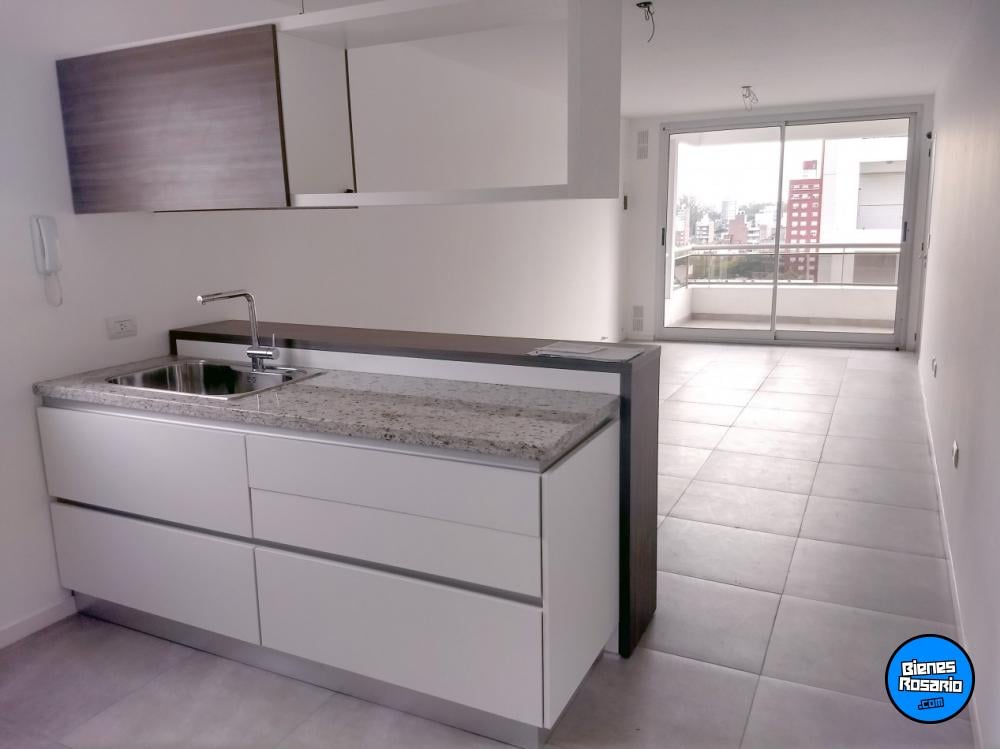 Cocina integrada a amplio living comedor con salida al balc髇 al frente.