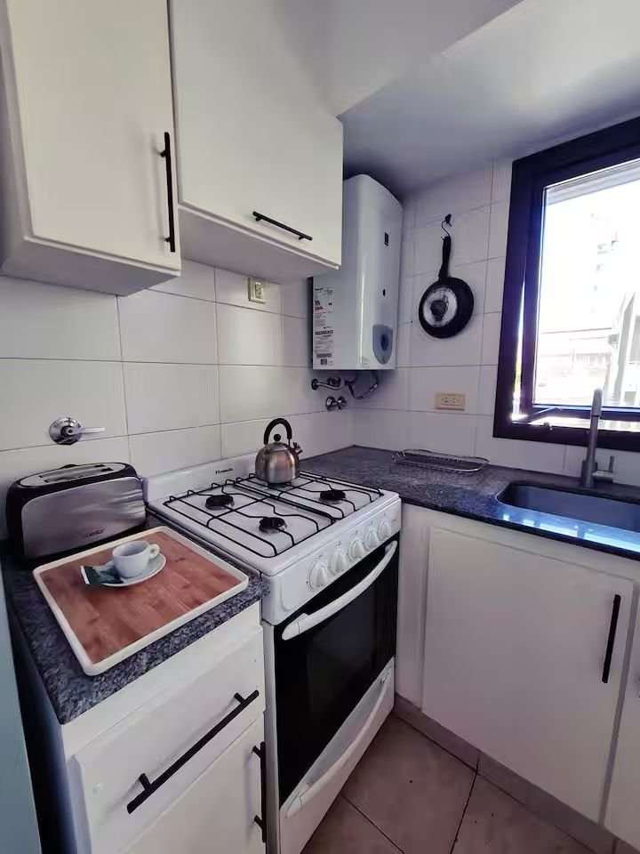 Departamento de un dormitorio, cocina, living/comerdor, baño y balcón frente. Es cómodo y luminoso, sofá amplio además de la cama doble y TV. Es ideal para turismo o trabajo. El edificio tiene ascensor. Ubicado en el barrio Agote a tres cuadras del barrio histórico y cultural de Pichincha donde se puede disfrutar la noche en los bares y boliches más populares de Rosario. Cercano a Facultades "Medicina", Terminal de ómnibus, Mercado del Patio y Shopping del Alto Rosario.