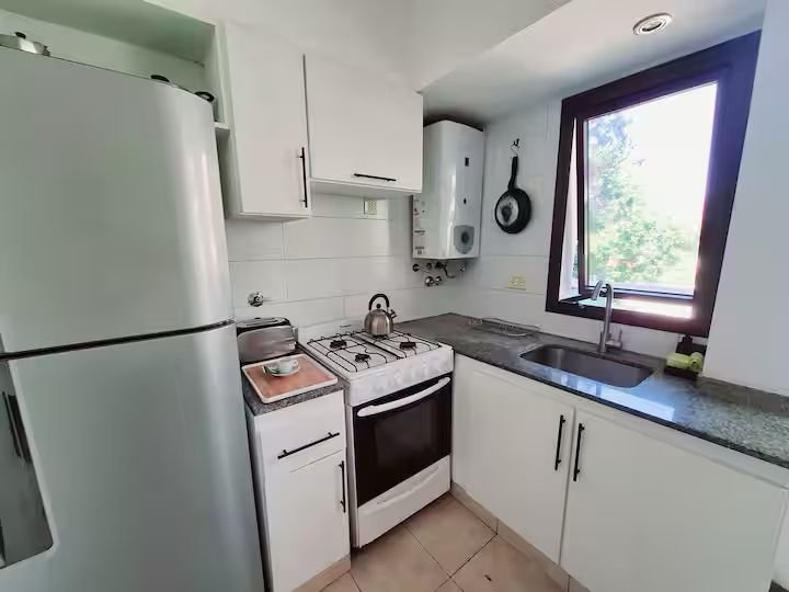 Living comedor con cocina completa integrada con ventilacion propia