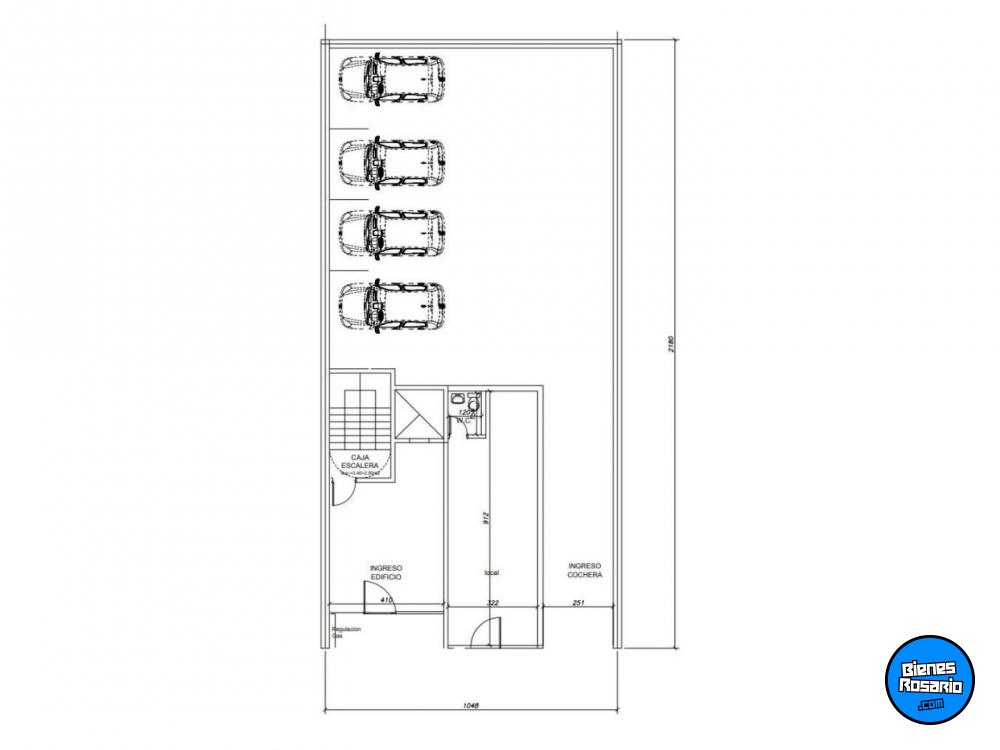 Planta baja con local comercial y 5 cocheras disponibles.