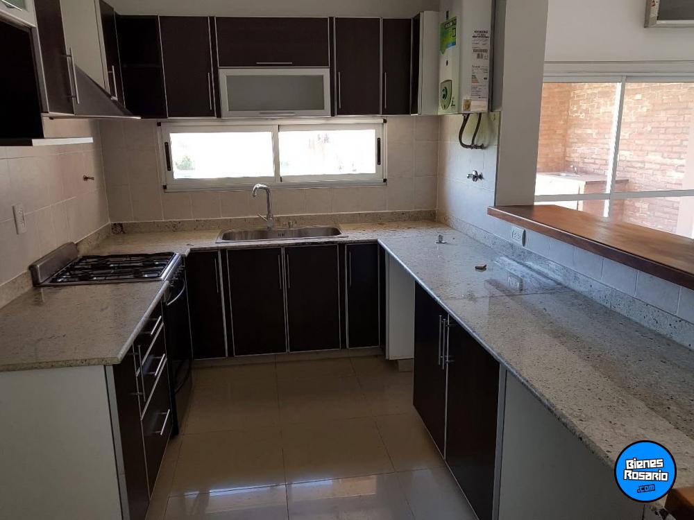 Hermosa casa de tres dormitorios en Barrio Tierra de sueños 2. Cocina con mesada de granito, Linving comedor con amplias ventanas que los hacen muy ventilado y luminoso.