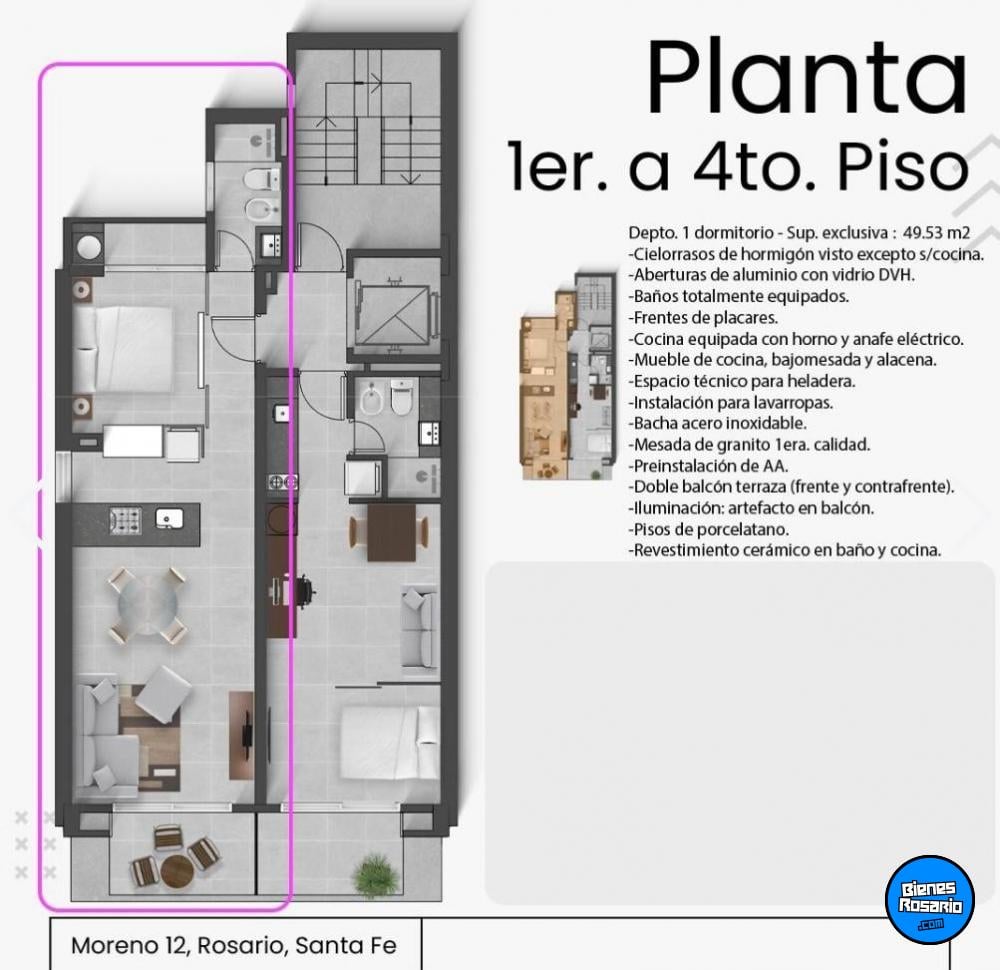 VENTA | A ESTRENAR - Departamento 1 dormitorio, frente, balc髇, quincho con parrillero, jacuzzi en azotea. Moreno 12, Rosario.,