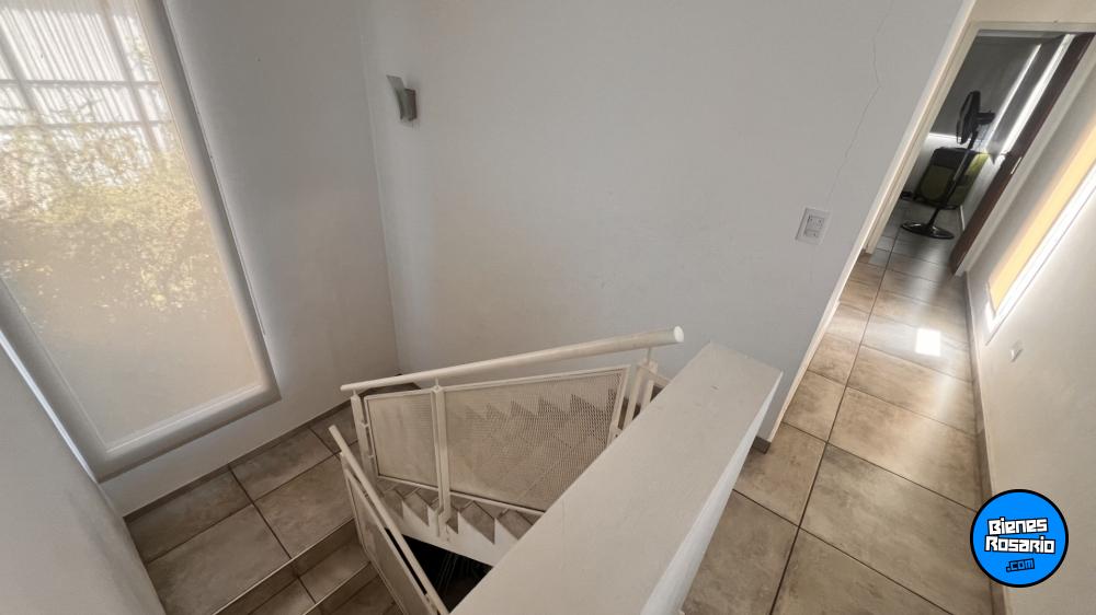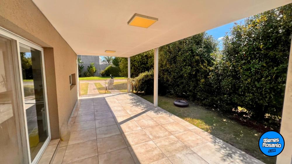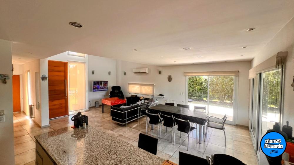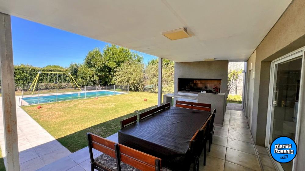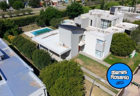 Casa amoblada, perimetral contra Rosario, con orientaci髇 Oeste, superficie de lote 800 m2 y consta de Planta Baja; garage pasante para 2 autos, bano, cocina comedor y living en concepto abierto con doble altura, lavadero, salida a quincho galer韆 con piscina y sol醨ium, ba駉 completo y un dormitorio en Suite, Planta Alta 2 dormitorios con 2 banos, totalmente forestada,