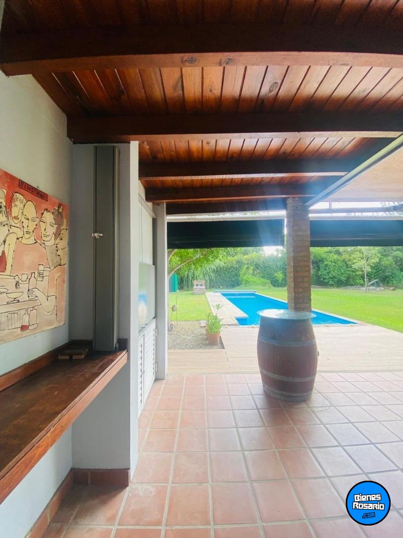 Cuenta con una habitacion en planta alta habitaciones y un baño completo, ideales para el confort diario. El exterior es un verdadero oasis, con un extenso jardín donde se destaca una hermosa pileta, perfecta para disfrutar de los días soleados. La propiedad se sitúa en una ubicación privilegiada, en la intersección de Don Bosco y San José, en Roldán, Santa Fe,