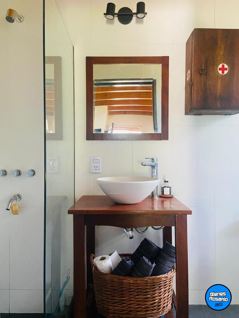 Loft de alquiler temporario en Roldán, un espacio ideal para quienes buscan tranquilidad y contacto con la naturaleza. Esta encantadora propiedad ofrece un diseño moderno y funcional, con un amplio living comedor que se integra perfectamente con la cocina, creando un ambiente acogedor y luminoso.