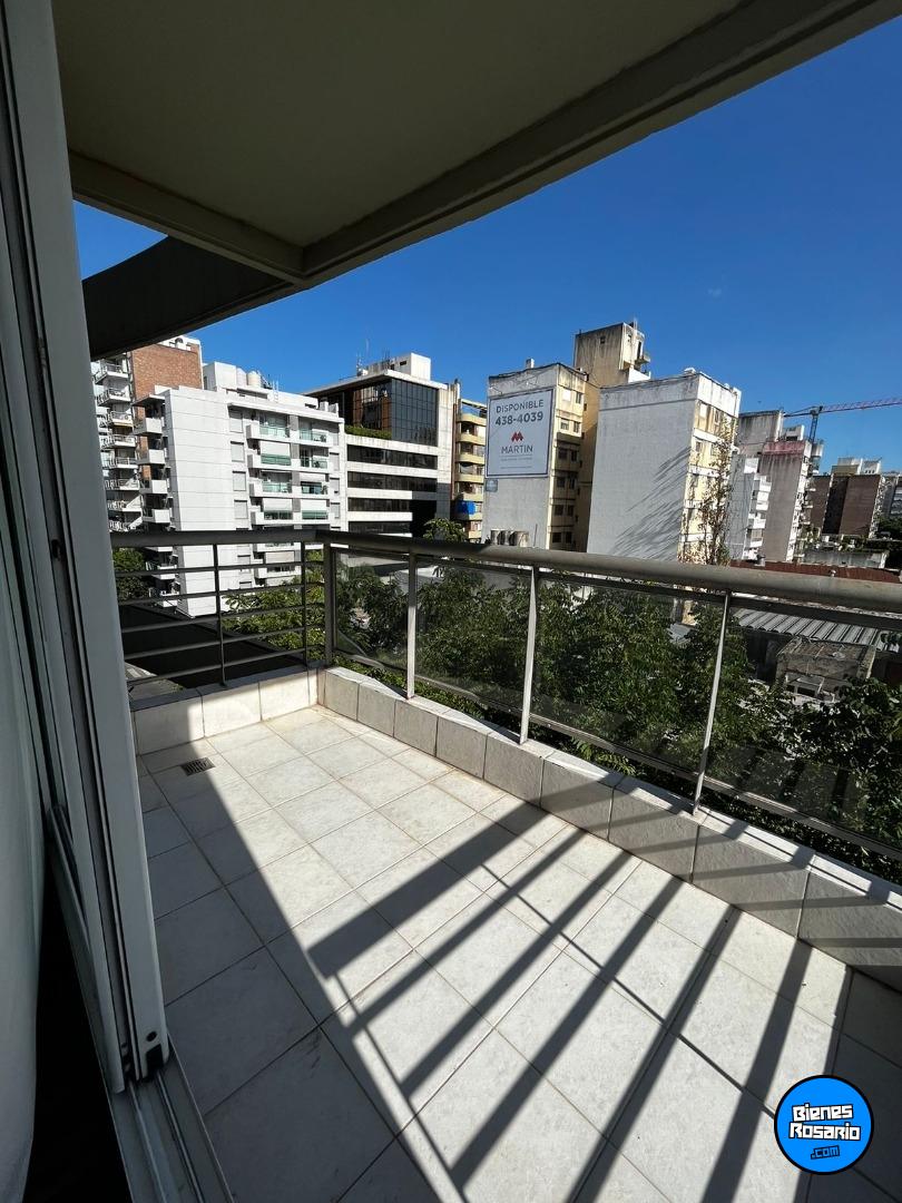 Es un departamento moderno de dos a駉 de antig黣dad en un quinto piso, externo con balc髇 al frente.