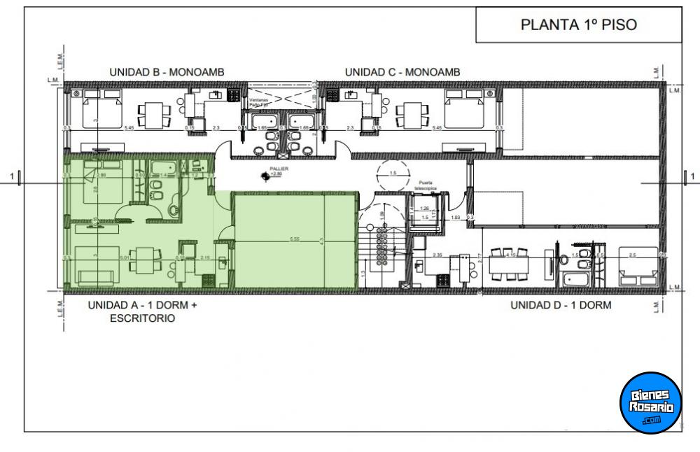 Se ingresa a un amplio y luminoso living/comedor diario, integrado a la cocina por una barra tipo americana, un espacio de oficin, un dormitorio con placard empotrado y ba駉 completo.